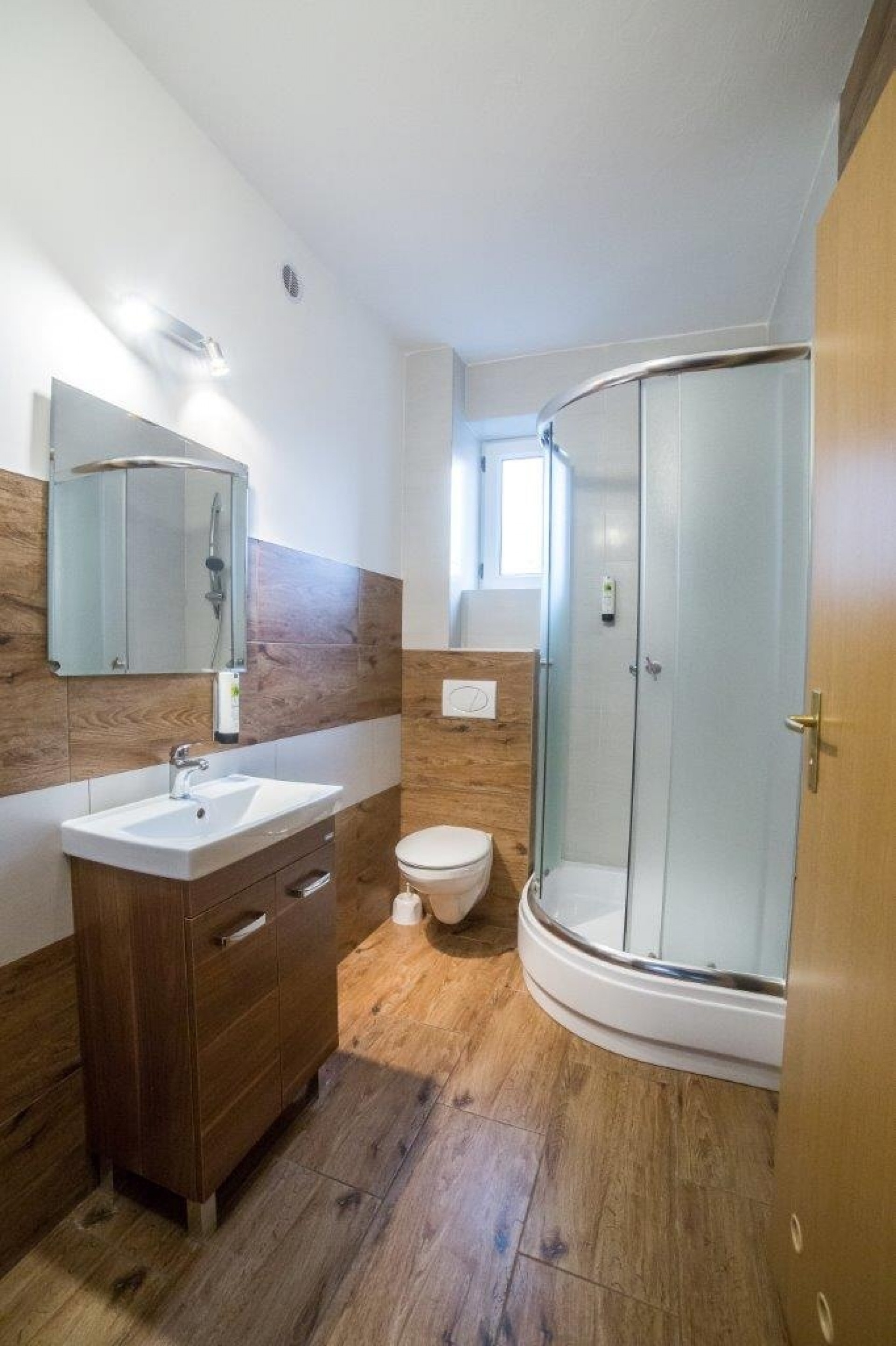 W pokoju znajduje się mały aneksem kuchennym (mikrofala, chłodziarka, czajnik bezprzewodowy) łazienka z prysznicem oraz TV LED.