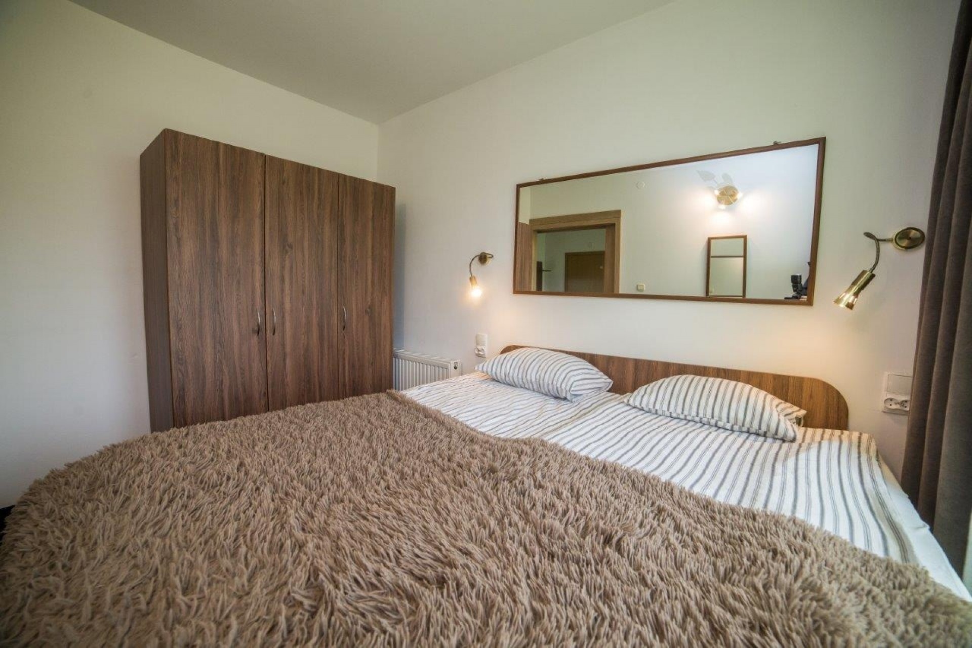 Apartament przeznaczony jest dla 2-4 osób. Składa się z sypialni z łożem małżeńskim 180, pokoju z rozkładaną 2-osobową 150 sofą i TV LED 32' oraz oddzielną kuchnią i stołem z 4 krzesłami, a także dwoma niezależnymi wejściami do łazienki.