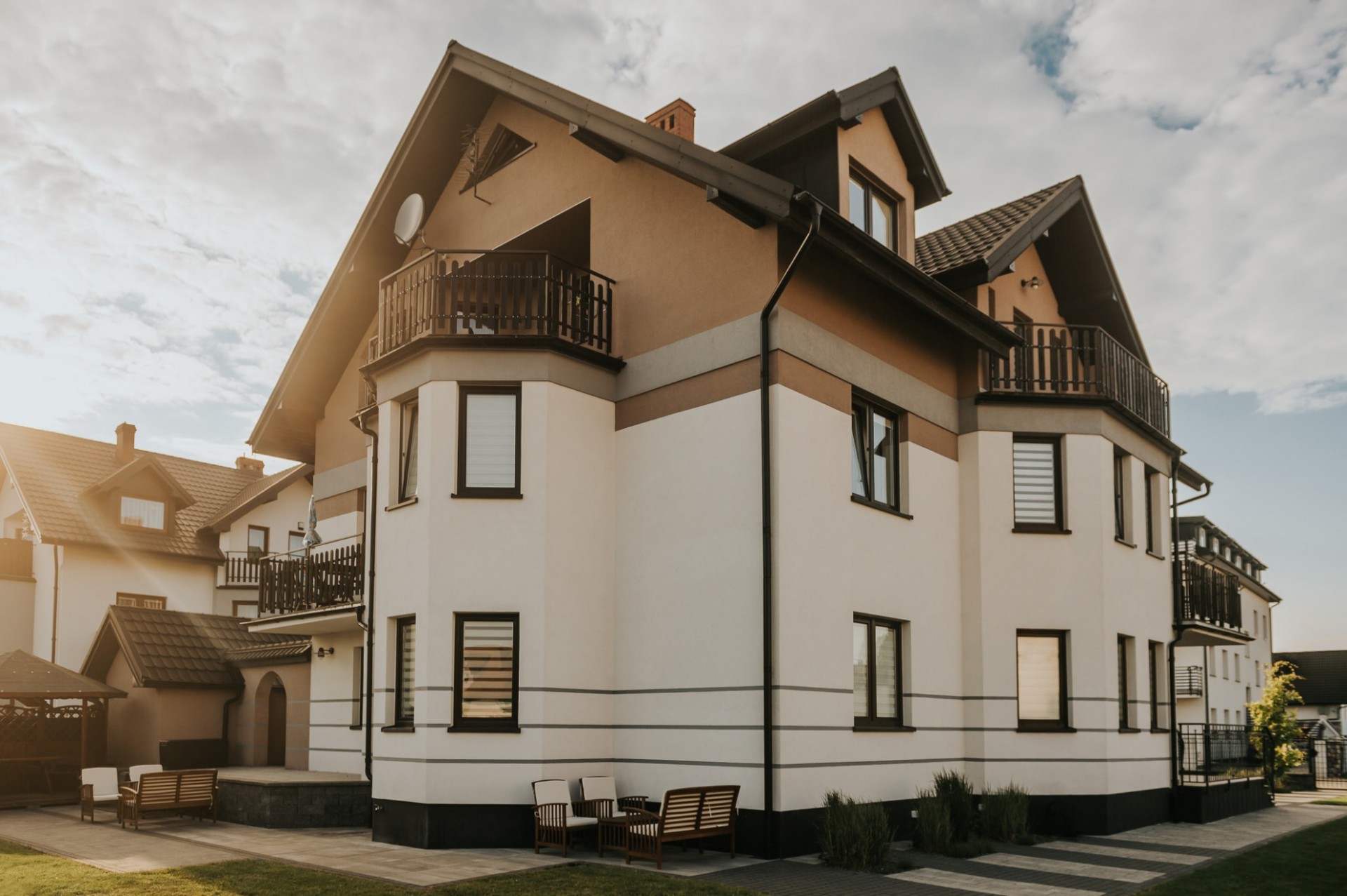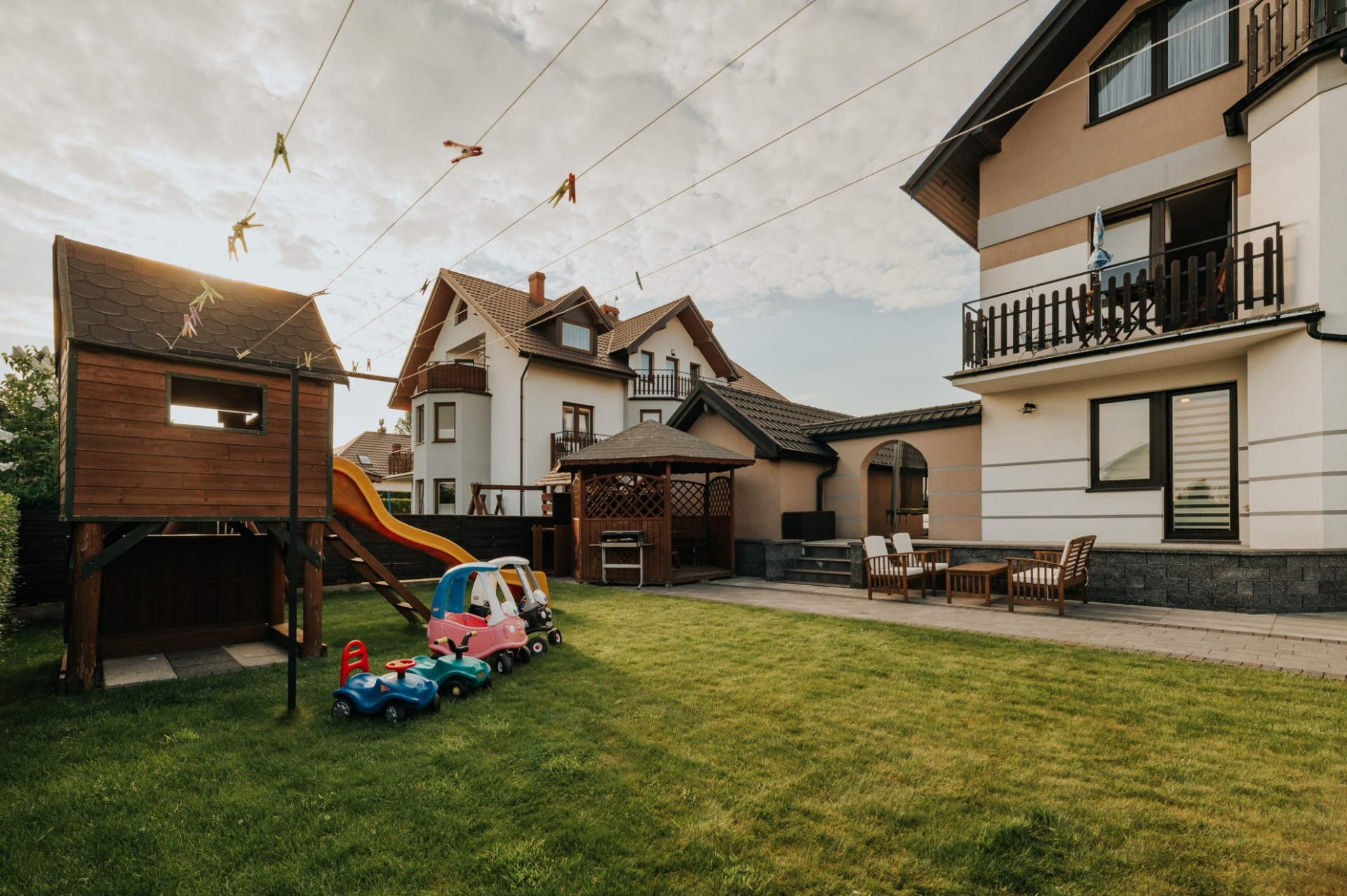 Do dyspozycji gości oddajemy również aneksy kuchenne, żelazko z deską do prasowania oraz ogród wypoczynkowy. Na terenie ogrodzonej posesji znajduje się altana, grill oraz plac zabaw dla dzieci i parking.