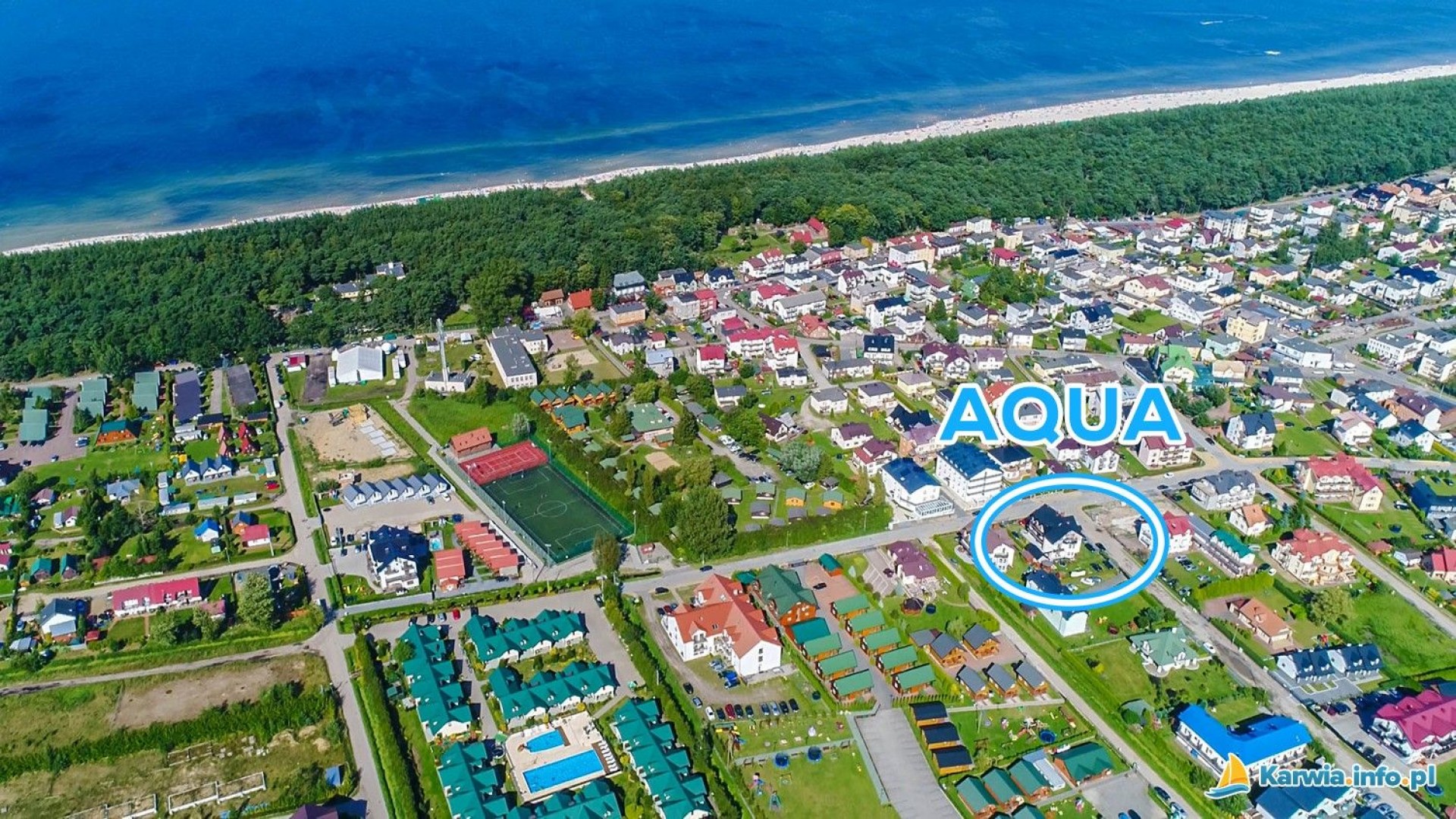 Pokoje i Apartamenty Aqua znajdują się w malowniczej części Karwi. Zaciszna lokalizacja obiektu, z dala od hałasu i tłumów turystów, pozwala na spokojny wypoczynek. Budynek jest położony około 400 metrów od jednej z piękniejszych plaż na polskim wybrzeżu.