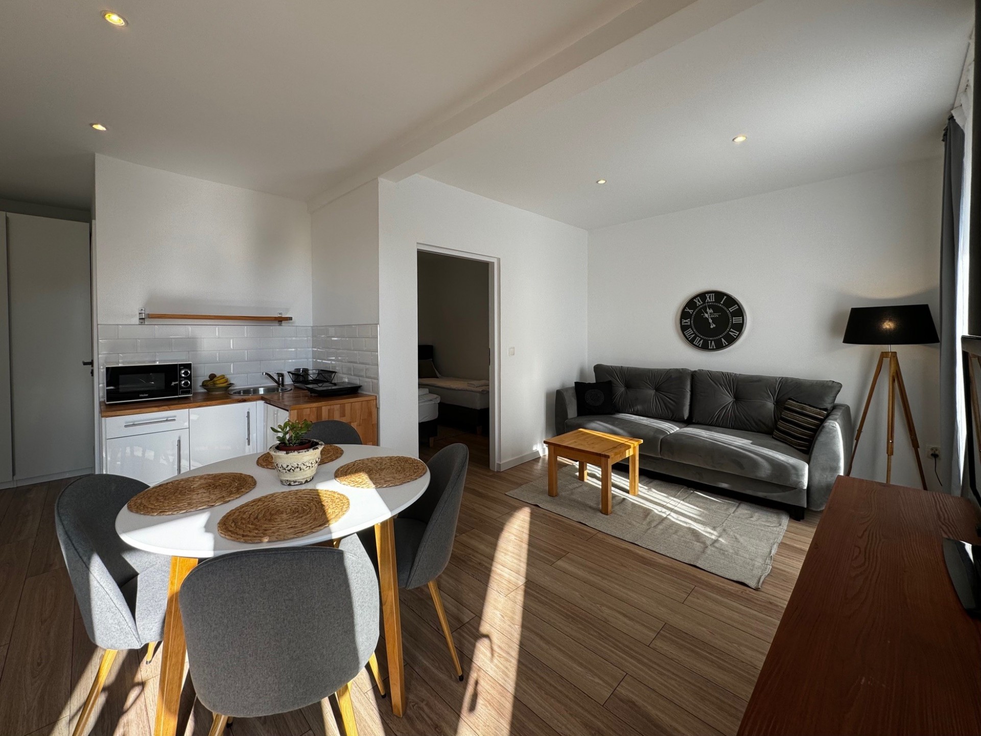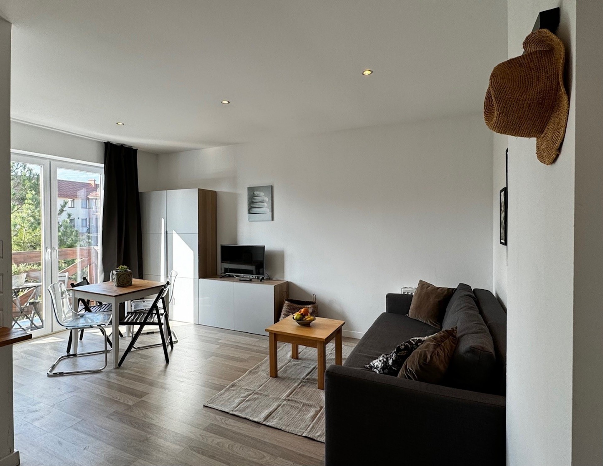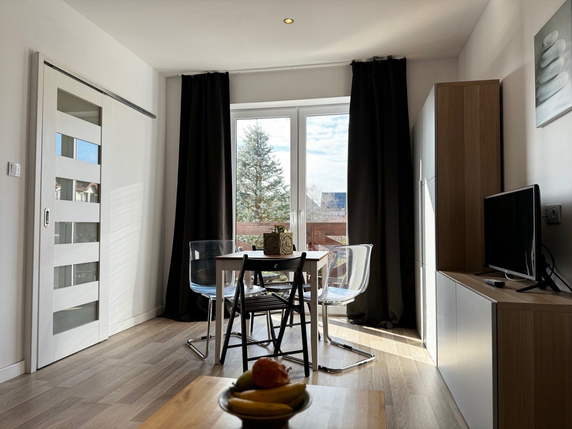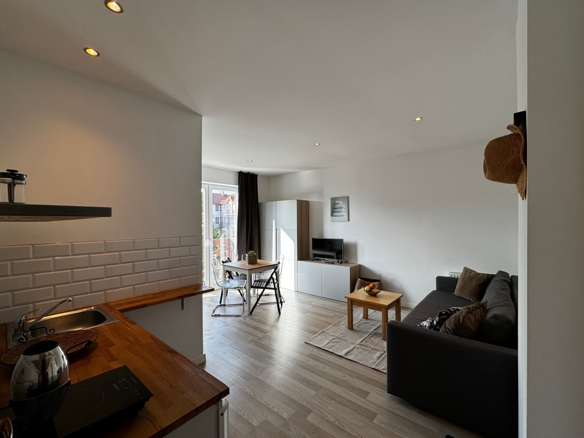 Apartamenty składają się z pokoju dziennego i z sypialni oraz każdy apartament wyposażony jest w aneks kuchenny.
