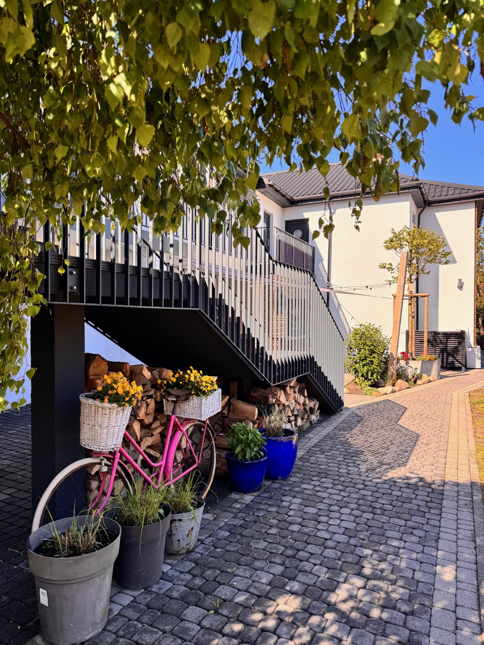 Wszystkie apartamenty i pokoje posiadają tarasy na parterze i balkony na piętrze. W ogrodzie znajduje się miejsce wypoczynkowe z grillem.