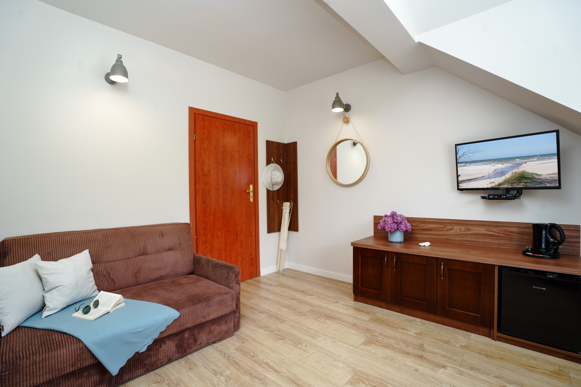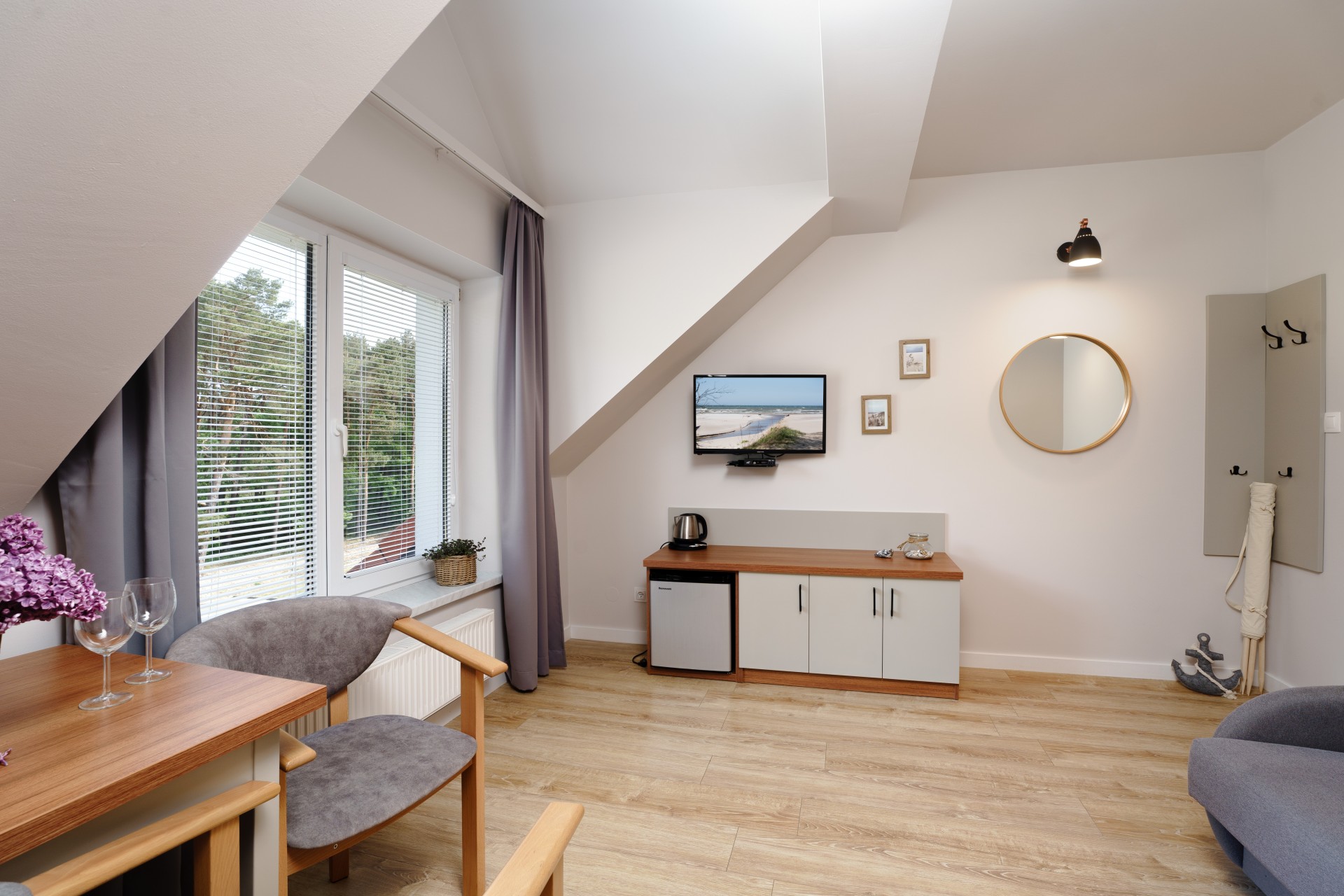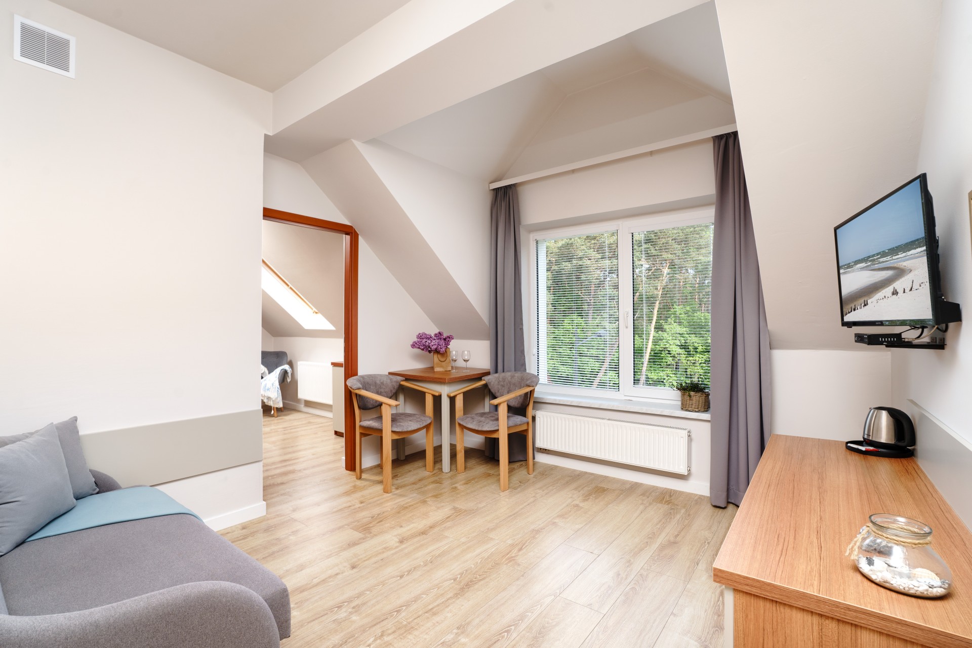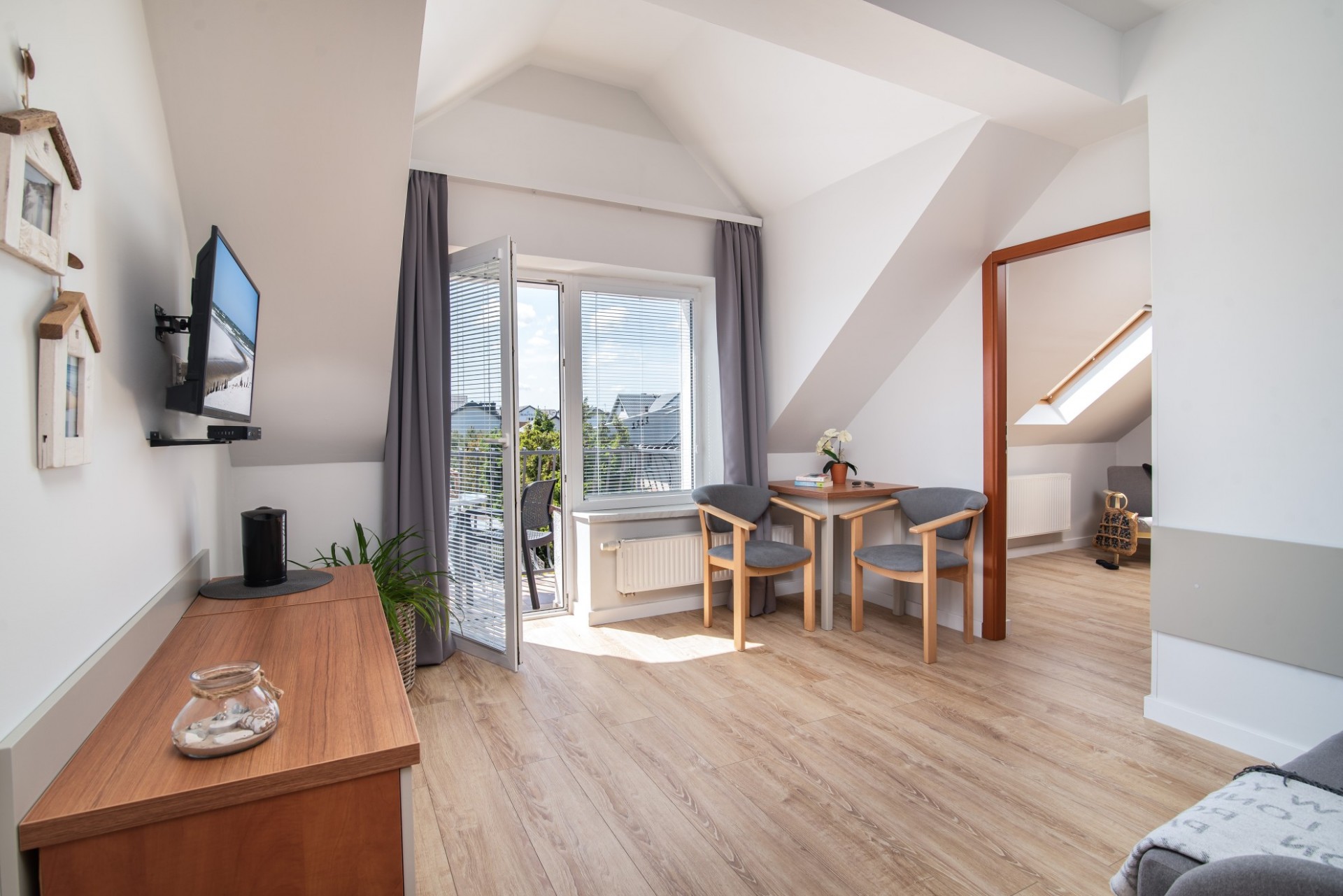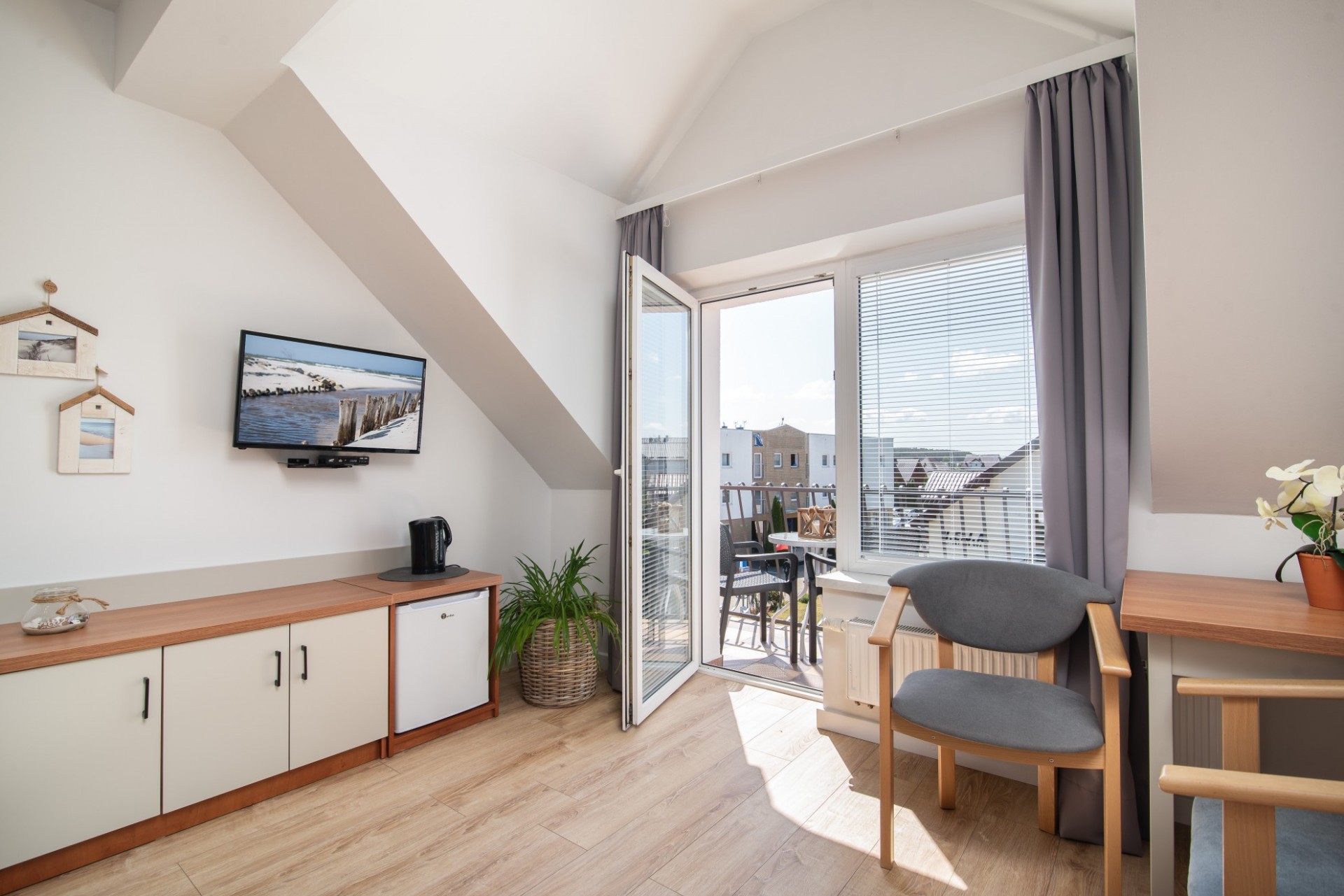 Przygotowaliśmy dla Państwa pokoje 2 osobowe wyposażone w łazienkę, TV, czajnik oraz sprzęt plażowy. Część pokoi posiada tras lub balkon.